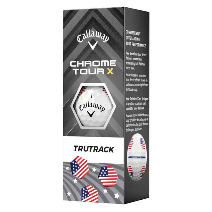 Chrome Tour X USA TruTrack is engineered to provide outstanding distance, workability, and spin so you can experience your best performance from tee-to-green. Plus, USA TruTrack combines the best elements of Truvis and Triple Track for enhanced roll feedback, visible spin, and alignment.
