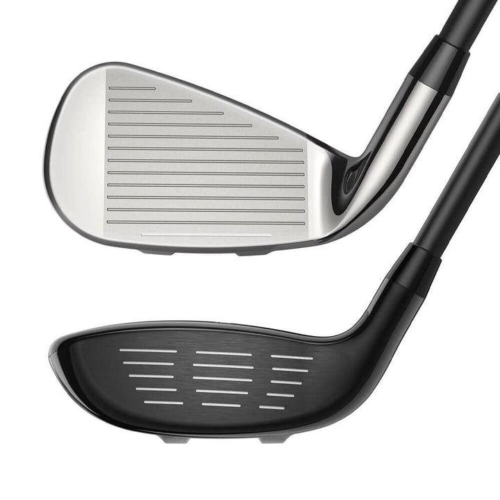 The hybrid-iron shape in the 6 and 7 iron features a hollow construction like a hybrid with a leading edge and topline that mimic an iron. The result is a unique club that blends the best of hybrid and iron performancefor easy launch and improved accuracy on longer approach shots. The hybrid-irons feature steep BAFFLER rail designs to reduce digging.