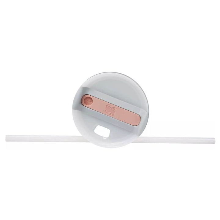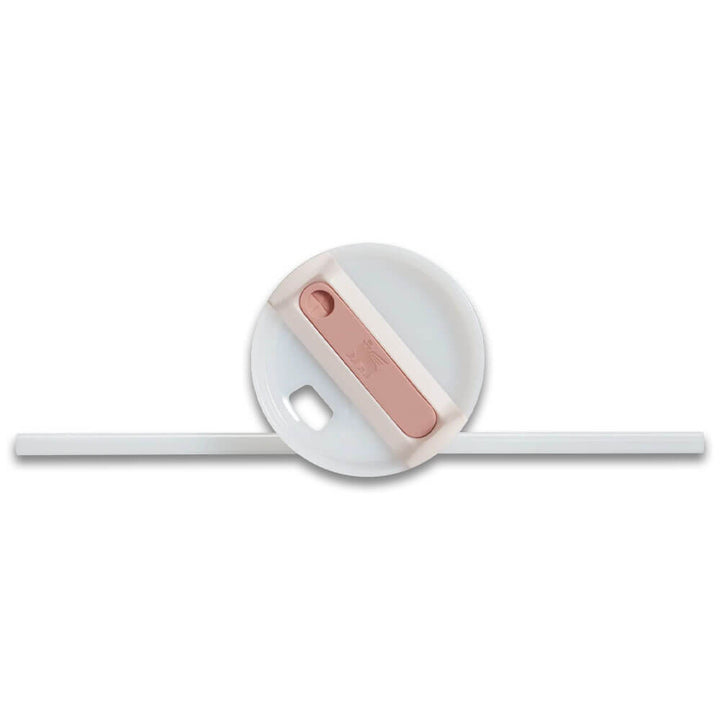 The lid rotates to the straw opening, drink spout opening, or closed position.