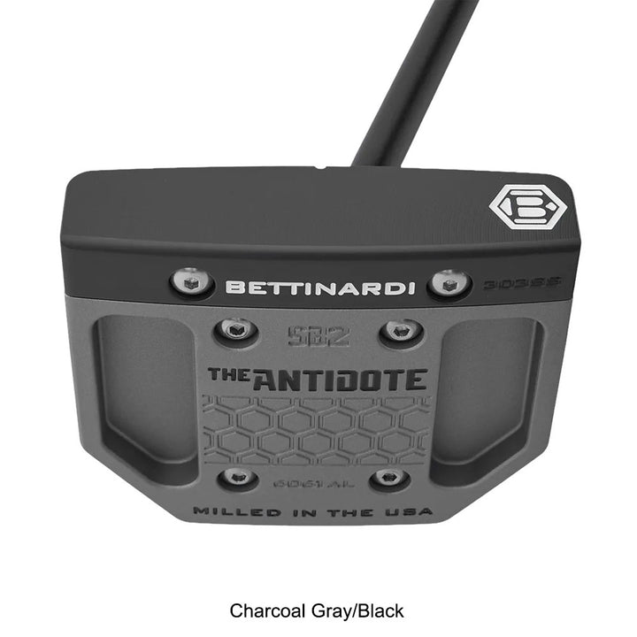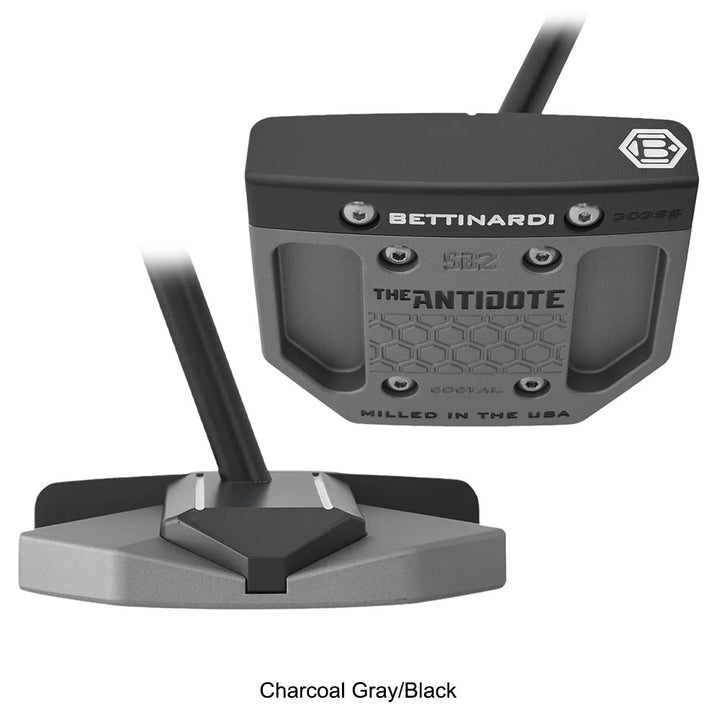REMIX! We've remixed Bettinardi’s first generation of Simply Balanced™ “zero torque” putters. This SB2 mallet is equipped with Flymill face milling, delivering a firmer feel than the production model. The SB2 features a Black Armor 303 Stainless Steel face and a Black Armor 6061 Aluminum engine, set within a precision-milled SB2 Remix Putter Anodized 6061 Aluminum body. Its topline and two flange lines on the insert enhance contrast and make alignment effortless. Engineered for ultimate stability, these putters keep the face square throughout the stroke, regardless of swing path, giving you unmatched control and consistency on the green and Charcoal gray. Our revolutionary Simply Balanced™ technology positions the shaft of the SB2 perfectly with the Center of Gravity, maintaining dynamic balance for a smooth and consistent stroke. Simplify your putting with the Simply Balanced™ SB2. Comes complete with a black shaft, Bettinardi Hex B standard grip and matching headcover.