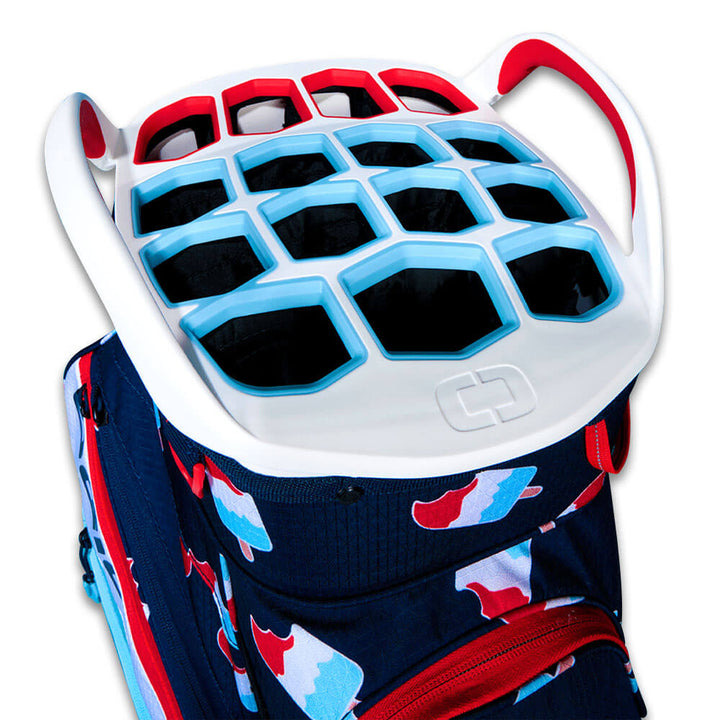 Keep your clubs perfectly organized and separated with the 15-way Woodē top, designed to streamline your setup and make finding the right club a breeze. With 11 thoughtfully placed pockets, this cart bag has room for everything—including easy-access spots for your valuables and a cooler pocket to keep your drinks chilled. Convenience and style? Woodē delivers both.