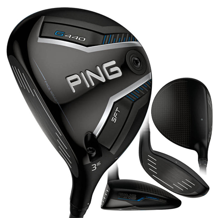 The Ping G440 SFT Fairwaywood (Straight Flight Technology) is the perfect choice for golfers struggling with a slice or seeking a more consistent and straight ball flight. The SFT features a draw-inducing CG location that brings shots back into the fairway. The face is taller for more confidence off the tee while maintaining a CG location that delivers high-launching performance off the ground. A Free Hosel and Carbonfly Wrap help lower the CG, increase forgiveness and contribute to a more muted, pleasing sound. Lofts are adjustable ± 1.5° and lie up to 3° flatter than standard.