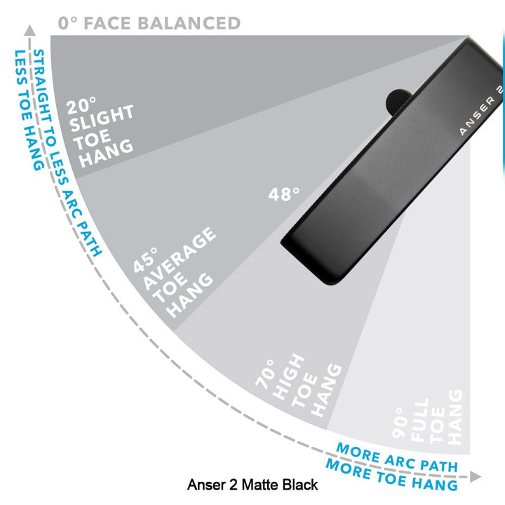 The timeless Anser features a striking matte-black finish, rounded corners and softer ballast surfaces. For slight-arc stroke types, the Anser makes squaring the face to the target line easy and natural.
