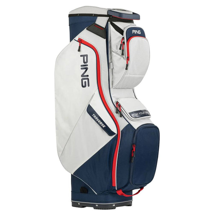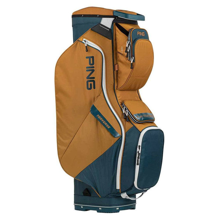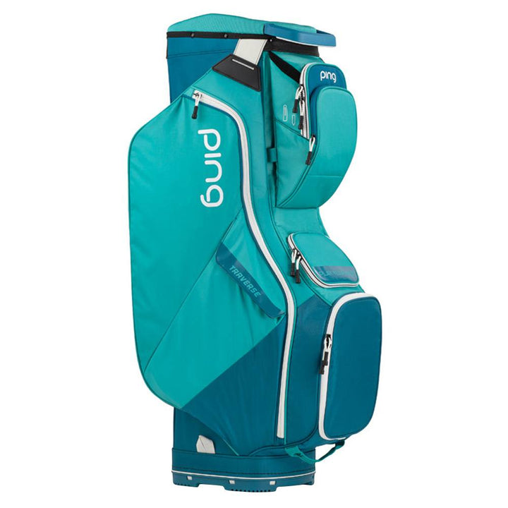 It already set itself apart as a super-light cart bag, and the re-designed Traverse weighs in a half-pound lighter at a trim 5 ½ pounds. It’s offered in fun new color combinations, too, plus it features two new outer magnetic slip pockets among 11 total, including full-length apparel pockets and a velour-lined valuables pocket. Another cool feature: the insulated cooler pocket. Keeps your set tidy in the padded 14-way top with two putter wells.