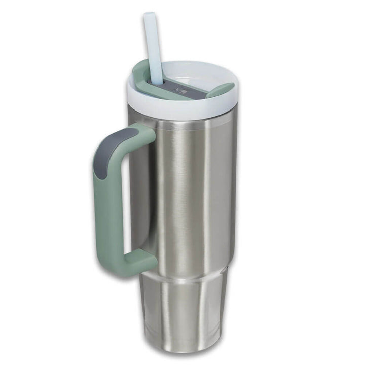 This Quencher H2.0 is generously sized (but not oversized) with an easy-carry, comfort-grip handle and a narrow base that will fit most cup holders. Long day of meetings? Rowing class? Trip out of town? Our durable 30 oz tumbler, made with recycled stainless steel, is up to the hydration challenge. The double-wall vacuum insulation will keep your water cold for 9 hours and iced for 40 hours. And to cap things off, there’s an advanced FlowState™ lid that features a rotating cover with three positions: a straw opening designed to resist splashes with a seal that holds the reusable straw in place, a drink opening, and a full-cover top.
