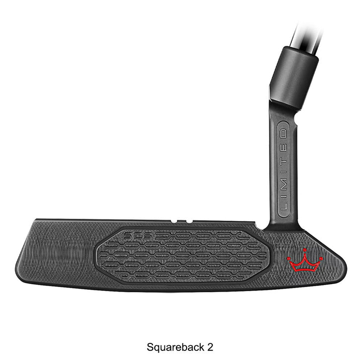 Scotty’s Steel Gray finish gives the Studio Xperimental Limited Squareback 2 a stealthy look with the putter’s classic, crisp alignment features presented in a dark, two-tone color palette. With a black, nickel-plated Studio Carbon Steel (SCS) face insert—including feel-enhancing chain-link face milling technology—this compact mallet has an engraved I-beam plumbing neck and multi-material construction for square alignment and higher MOI.